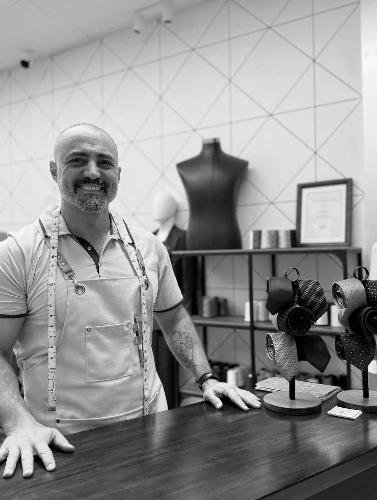 During your private consultation, we take precise measurements, discuss fabrics, and explore your vision to ensure every detail is crafted exclusively for you. Each session is guided by our master tailor, Antoine, offering a personalized experience from first fitting to final stitch.